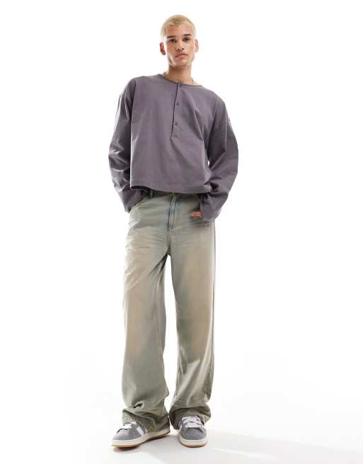 ASOS DESIGN – Langärmliges Oversize-Shirt in Anthrazit mit Henley-Ausschnitt