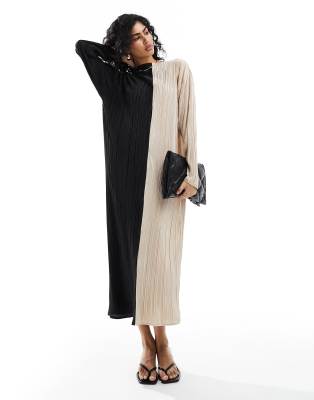 ASOS DESIGN – Langärmliges Plissee-Maxikleid im Blockfarben-Design