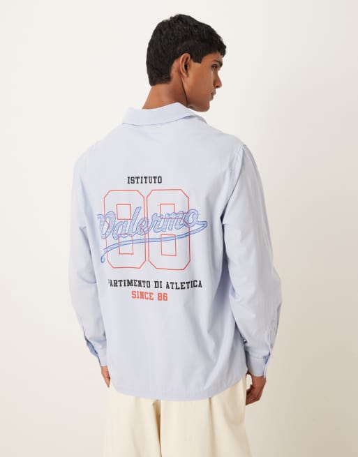 ASOS DESIGN – Langärmliges Relaxed Fit Popeline-Hemd in Blau mit Print