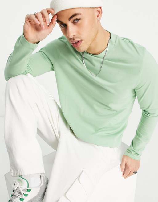 ASOS DESIGN – Langärmliges Shirt in Grün mit Rundhalsausschnitt - LGREEN