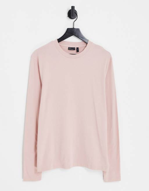 ASOS DESIGN – Langärmliges Shirt mit Rundhalsausschnitt in Rosa