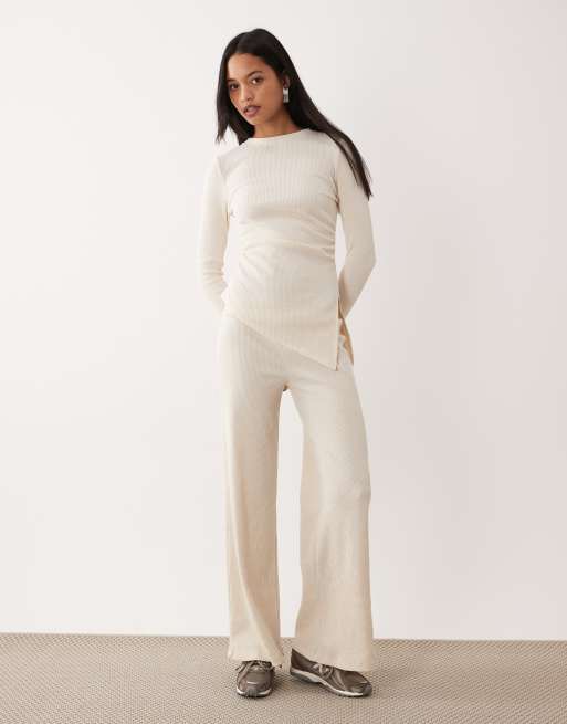 ASOS DESIGN – Langärmliges, tailliertes Oberteil in Cremeweiß mit Rippenmuster, Kombiteil