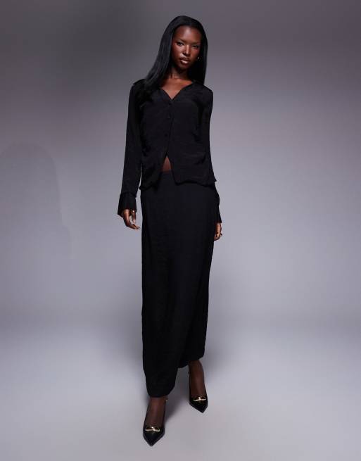 ASOS DESIGN – Langärmliges, transparentes Hemd in Schwarz mit Knitterstruktur, Kombiteil