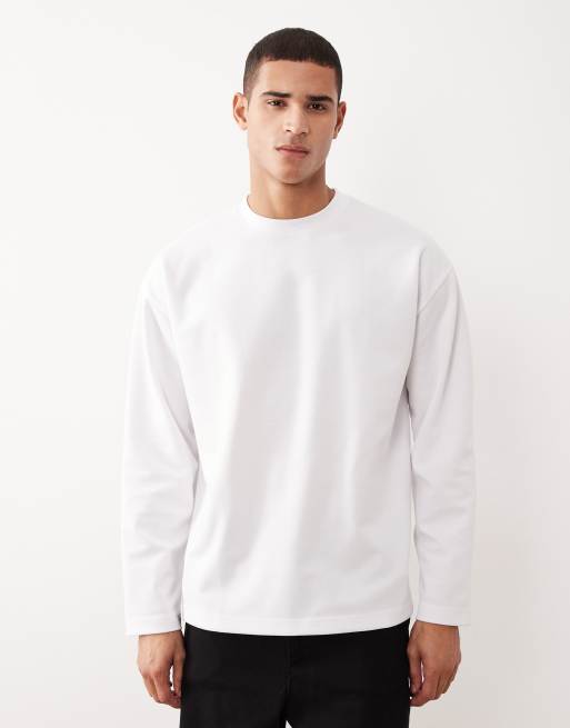 ASOS DESIGN – Langärmliges, weiches Oversize-Shirt aus schwerem Stoff in Weiß