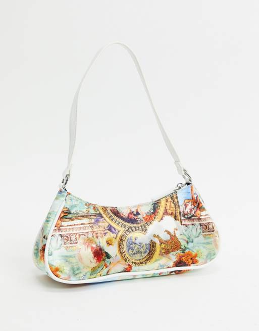 ASOS DESIGN – Lange Schultertasche im Stil der 90er mit Renaissance-Print