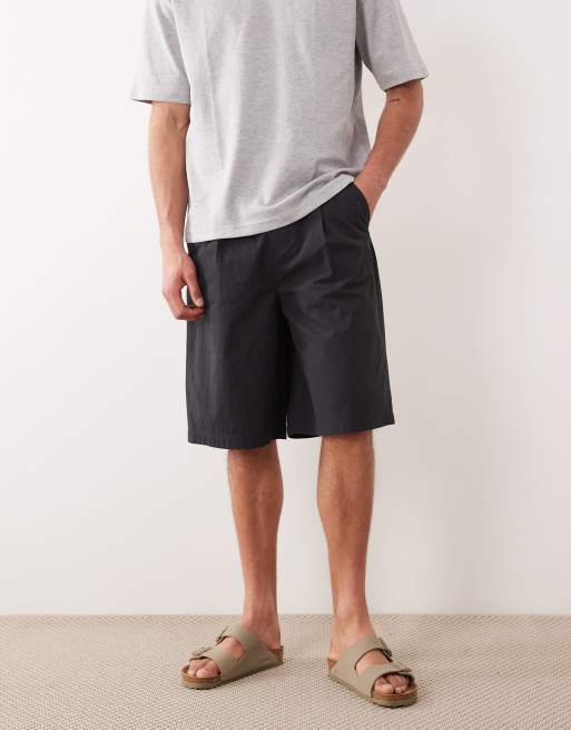 ASOS DESIGN – Länger geschnittene, elastische Jorts in Schwarz mit Bundfalten