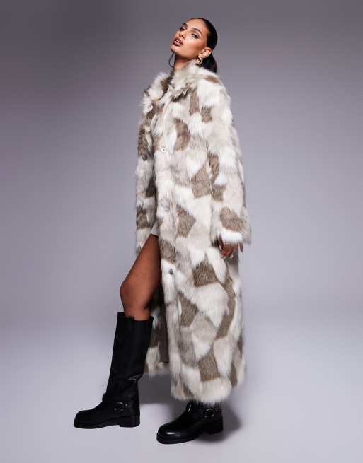 ASOS DESIGN – Langer Kunstpelz-Mantel mit Dalmatinermuster