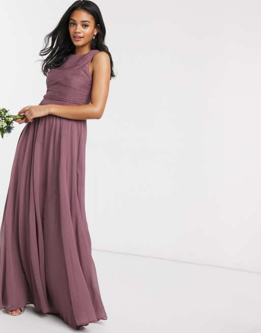 ASOS DESIGN – Langes Brautjungfern-Kleid mit weich plissiertem Oberteil