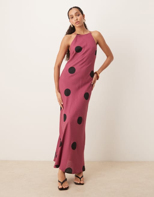 ASOS DESIGN – Langes Leinen-Sommerkleid mit Racerback und lila Punkten