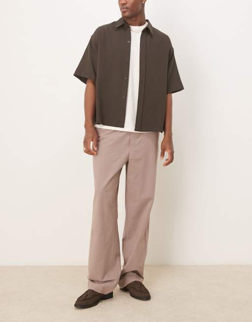 ASOS DESIGN – Lässig geschnittene Hose aus Leinenmix in Beige