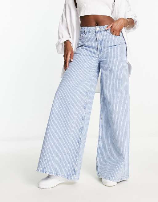 ASOS DESIGN – Lässig geschnittene Jeans in gestreiftem Blau mit weitem Bein