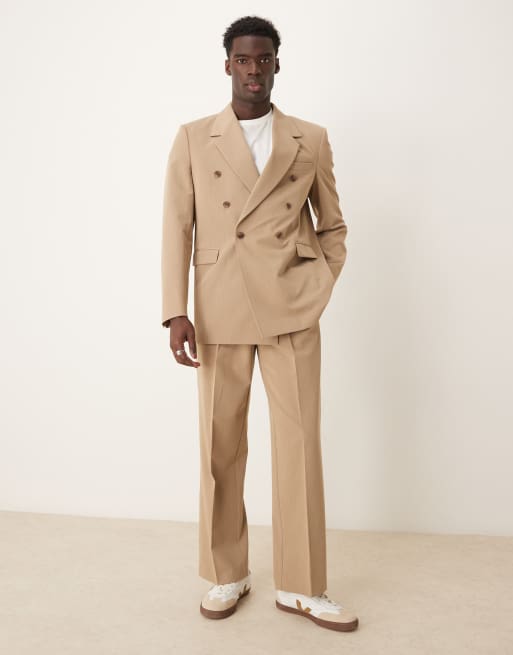 ASOS DESIGN – Lässig geschnittener Anzug in dunklem Steinbeige mit zweireihigem Design und kastiger Schulterpartie