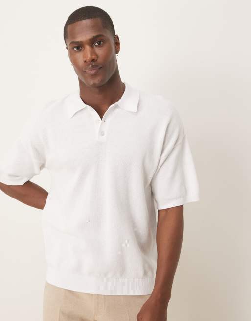 ASOS DESIGN – Lässig geschnittenes, leichtes Polohemd aus Pikee-Strick in Weiß