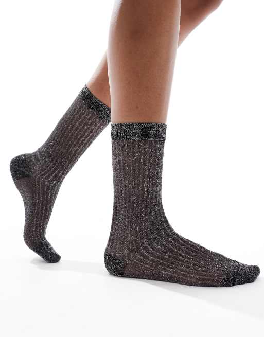 ASOS DESIGN – Lässige knöchellange Crew-Socken in transparentem Metallic-Schwarz