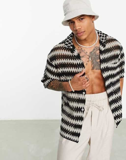 ASOS DESIGN – Lässiges Hemd in Schwarz aus Häkelstoff mit Reverskragen