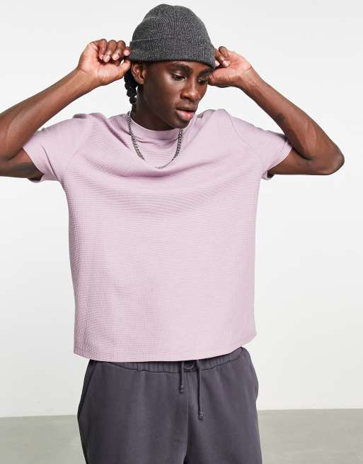 ASOS DESIGN – Lässiges T-Shirt in Lilakalk mit Waffelstruktur