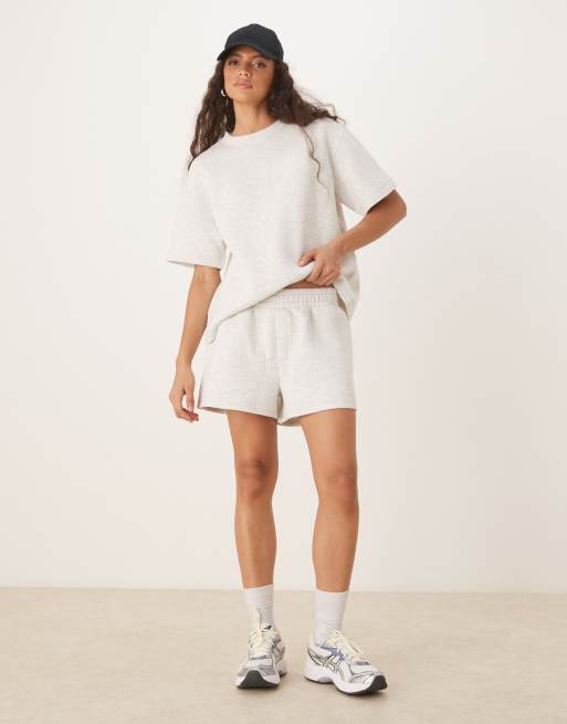ASOS DESIGN – Laufshorts in grau meliert mit breiter Rippstruktur, Kombiteil