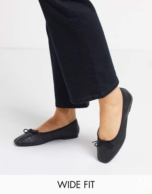 ASOS DESIGN – Layer – Schwarze Ballerinas aus Leder, weite Passform