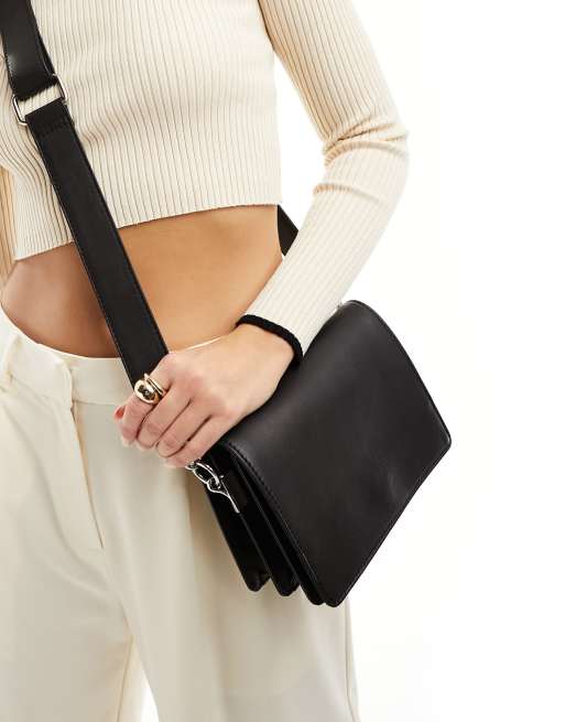 ASOS DESIGN – Leder-Umhängetasche in Schwarz mit mehreren Fächern