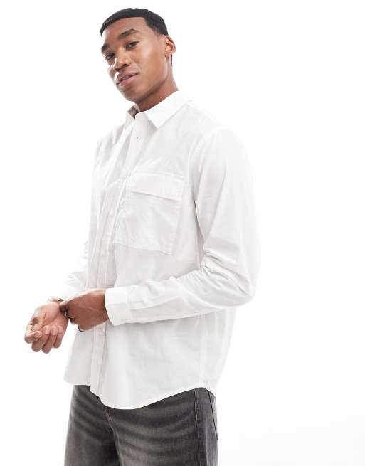 ASOS DESIGN – Legeres Hemd in Weiß mit doppellagigen Ärmeln