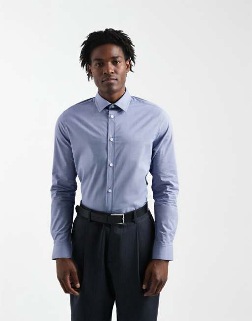 ASOS DESIGN – Leicht zu bügelndes, elegantes Hemd in Blau mit schmalem Schnitt