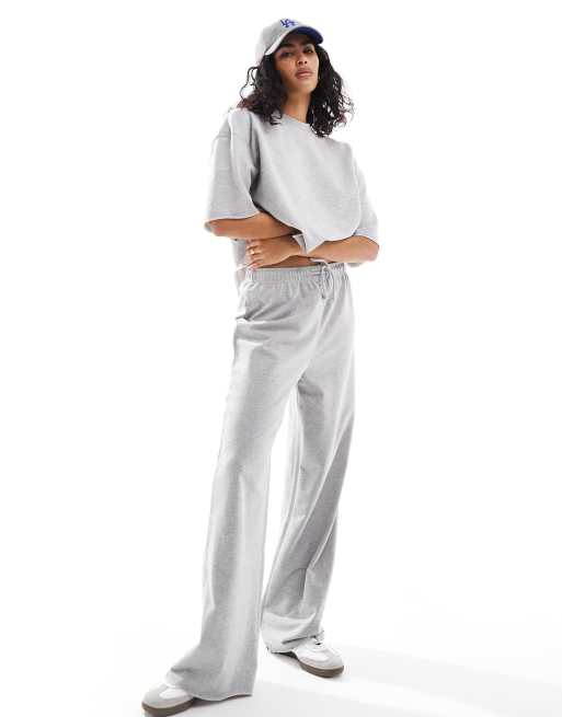 ASOS DESIGN – Leichte Jogginghose in meliertem Grau mit geradem Bein und unbehandeltem Saum