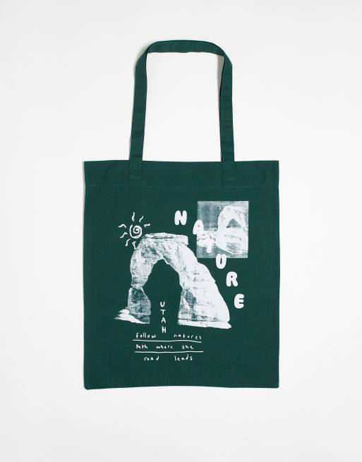 ASOS DESIGN – Leichte Tragetasche in Grün mit Print