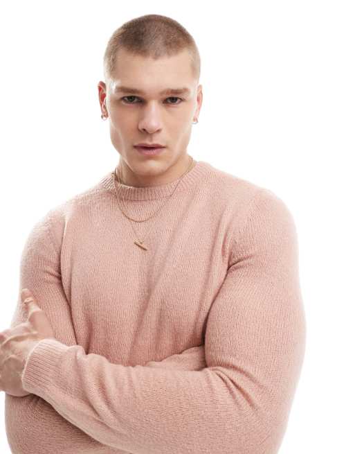 ASOS DESIGN – Leichter, angerauter Strickpullover in Rosa
