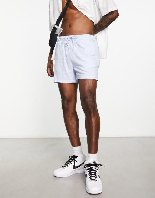 ASOS DESIGN – Leinen-Shorts in Hellblau mit schmalem, kürzerem Schnitt