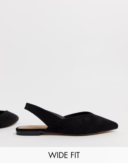 ASOS DESIGN – Leisure – Flache Ballerinas in Schwarz mit breiter Passform, hohem Schuhblatt und Fersenriemen