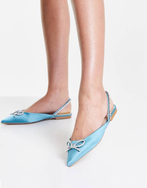 ASOS DESIGN – Liana – Spitze, flache Schuhe in Blau mit Fersenriemen und Schleife