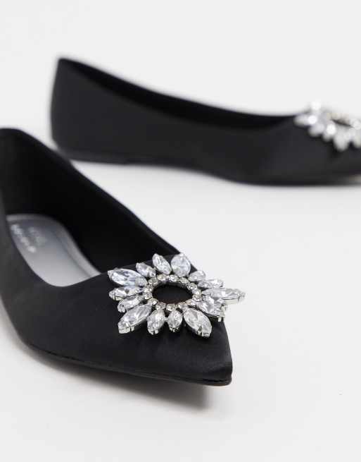 ASOS DESIGN – Lingo – Spitze, verzierte Ballerinas in Schwarz