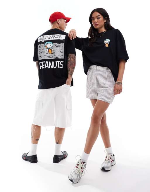ASOS DESIGN – Lizenziertes Unisex-T-Shirt in Schwarz mit Oversize-Schnitt und „Snoopy“-Prints