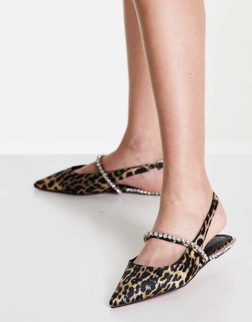 ASOS DESIGN – Lizzie – Verzierte Ballerinas aus mit Leopardenmuster und Fersenriemen