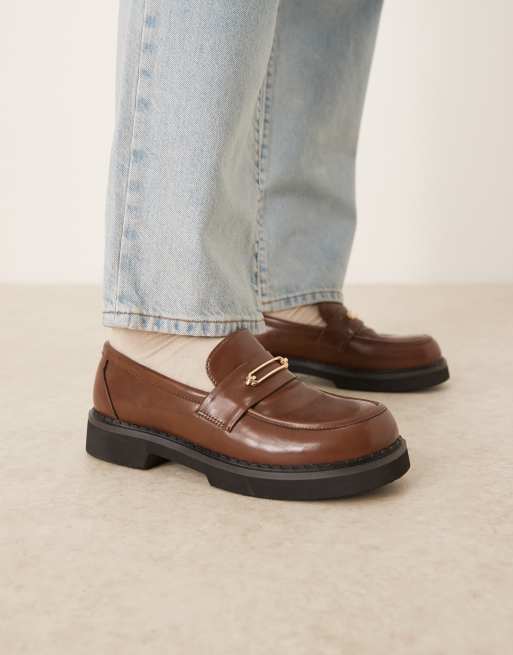 ASOS DESIGN – Loafer in Braun mit goldfarbener Trense
