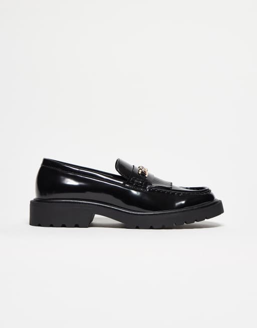 ASOS DESIGN – Loafer in Schwarz mit goldfarbener Kette
