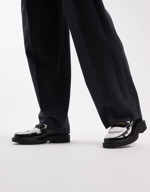 ASOS DESIGN – Loafer in Schwarz und Weiß mit goldfarbener Kette