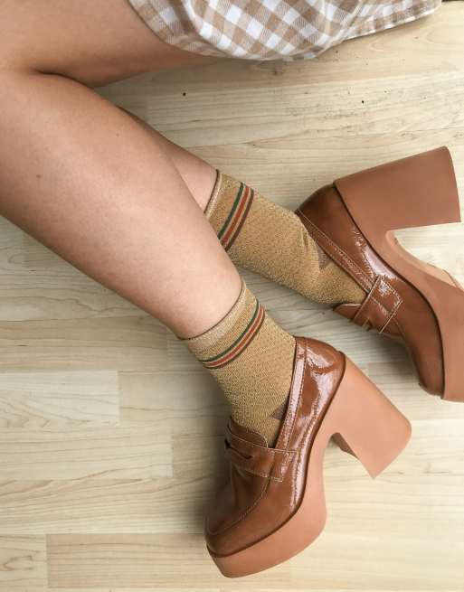 ASOS DESIGN – Loafer mit Absatz und dicker Profilsohle in Hellbraun