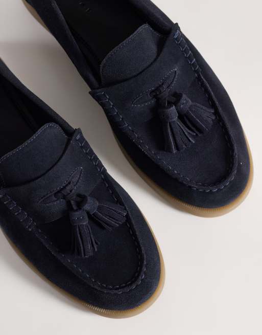 ASOS DESIGN – Loafer mit Bommel aus Wildleder in Marineblau