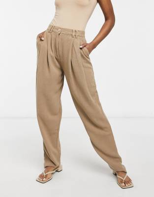 ASOS DESIGN – Locker geschnittene Leinenhose in Hellbraun mit Bundfalten