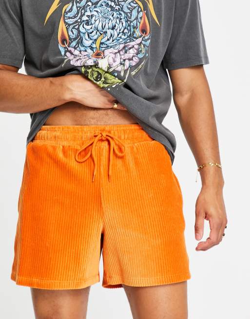 ASOS DESIGN – Locker geschnittene Shorts aus geripptem Velours in Orange