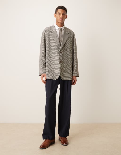 ASOS DESIGN – Locker geschnittener Blazer in Steinbeige mit Raglanärmeln und feinem Hahnentrittmuster