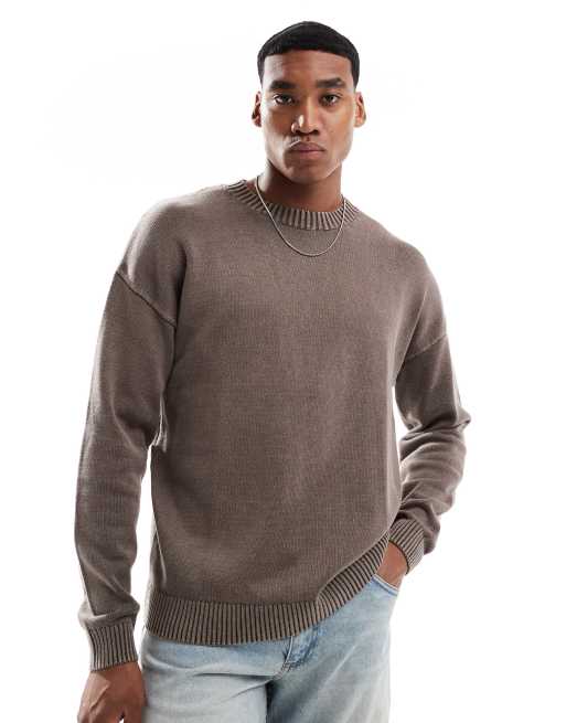 ASOS DESIGN – Locker geschnittener Strickpullover in verwaschenem Braun mit Rundhalsausschnitt