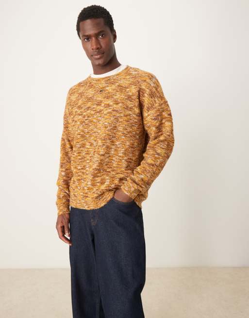 ASOS DESIGN – Locker geschnittener Strickpullover mit Rundhalsausschnitt und Space-Dye-Färbung in Hellbraun