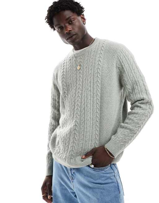 ASOS DESIGN – Locker geschnittener, weiter Strickpullover in Grün mit Zopfmuster und Rundhalsausschnitt