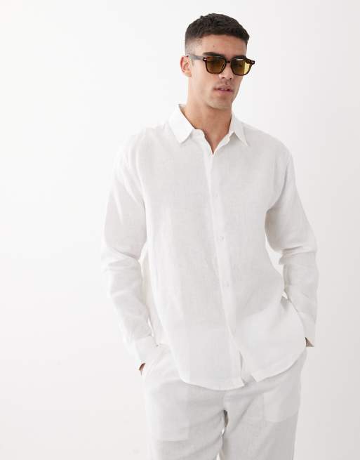 ASOS DESIGN – Locker geschnittenes Hemd aus 100% Leinen in Weiß, Kombiteil