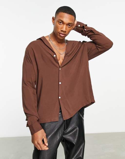 ASOS DESIGN – Locker geschnittenes Hemd aus Viskose in Braun