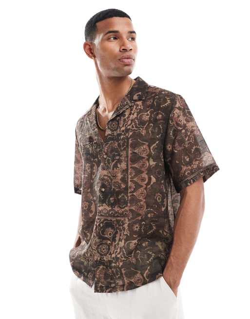 ASOS DESIGN – Locker geschnittenes Hemd in Braun mit Gobelin-Muster und Reverskragen