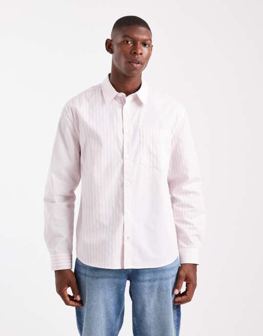ASOS DESIGN – Locker geschnittenes Hemd in Rosa mit Patchwork-Streifenmuster