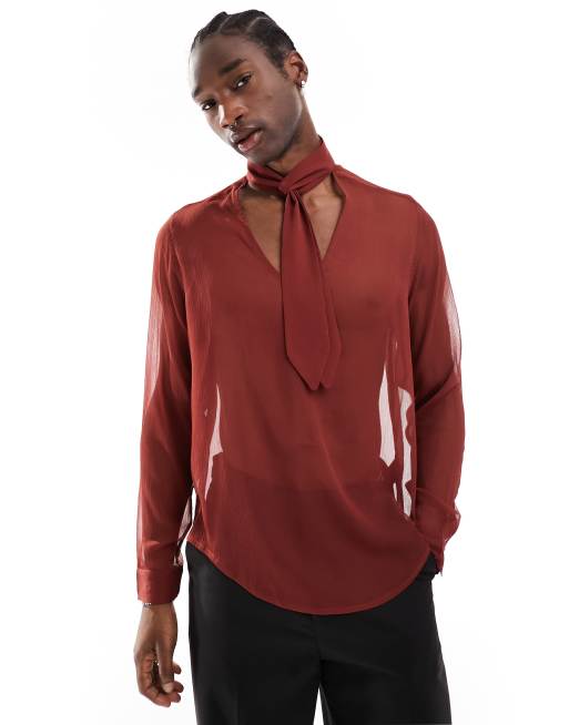 ASOS DESIGN – Locker geschnittenes Hemd in Rostrot mit tiefem V-Ausschnitt mit integriertem Bindeband